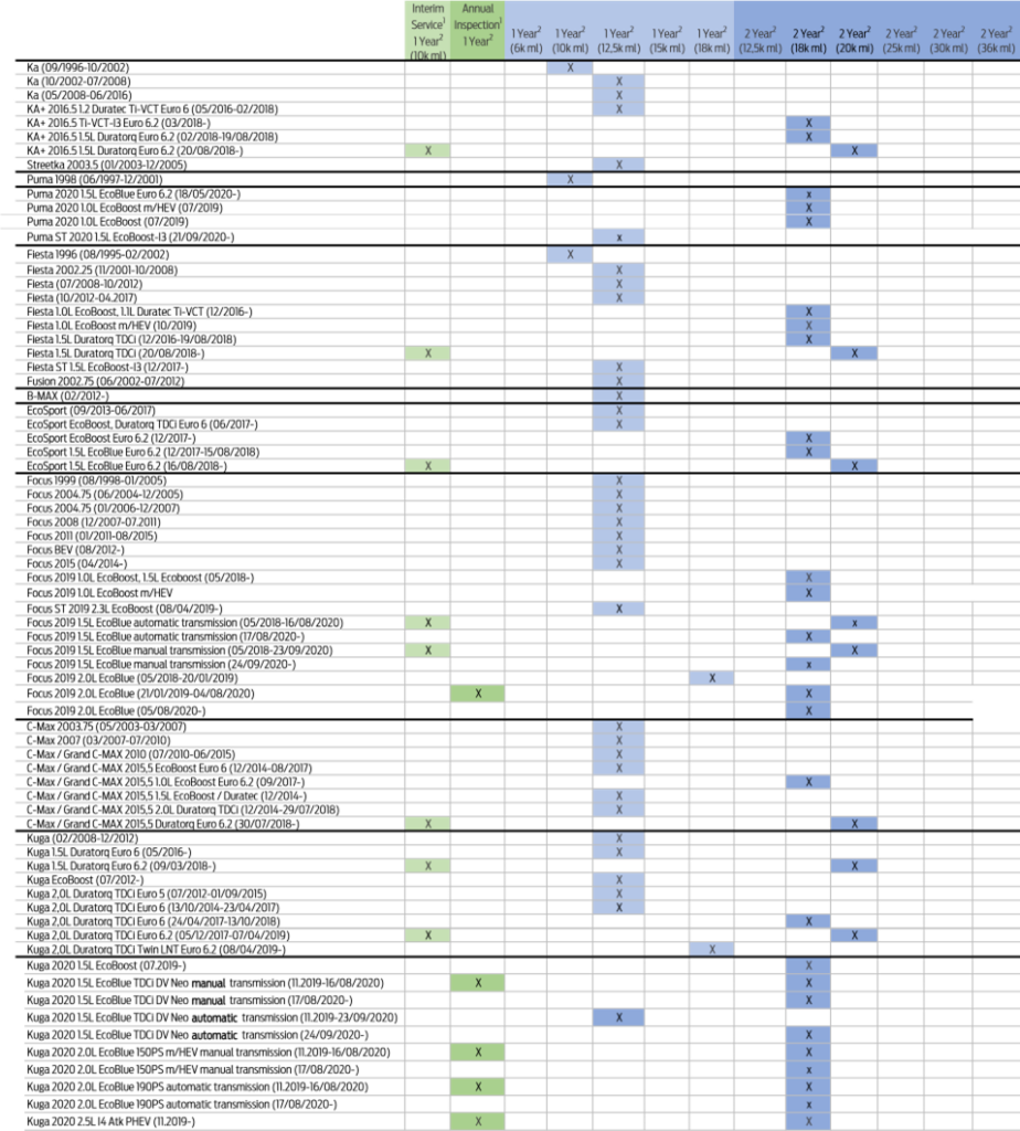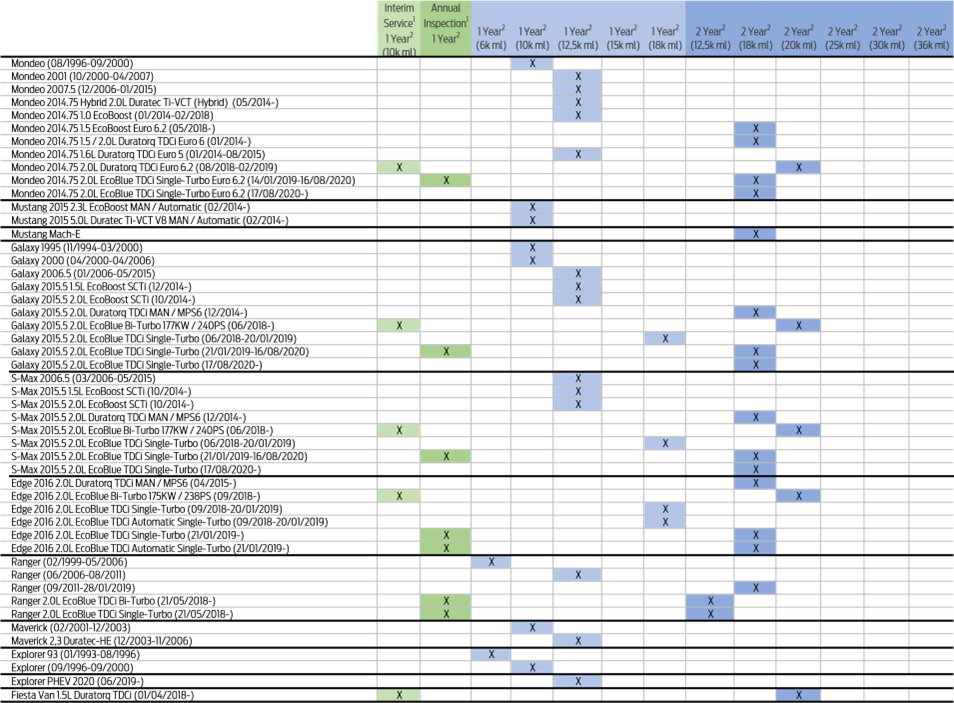 Maverick and Ranger up to model year 04/2011: every 12 months