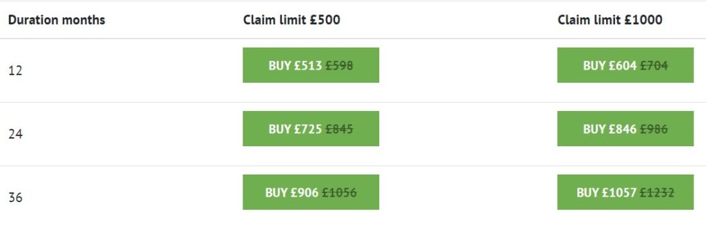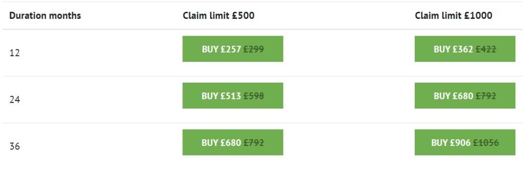 With two levels of cover available each having options for different periods of time and different expenses, here’s how the costs play pan out: