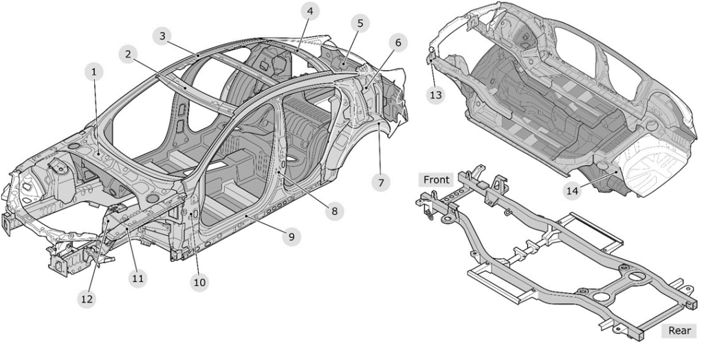 For the consistent application of the COP the shaded/ listed elements in the following illustrations and table represent the structural areas of vehicle construction.